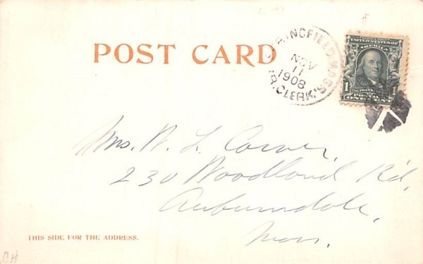 The Water Shops U.S. Armory in Springfield, Massachusetts Postcard - 1908 Grade: 3 writing on front Size: R - Regular size: Approx 3 1/2 X 5 1/2 inch (9 cm X 14 cm) Grading Scale: Grade 1 = Perfect corners Gra ... Read More