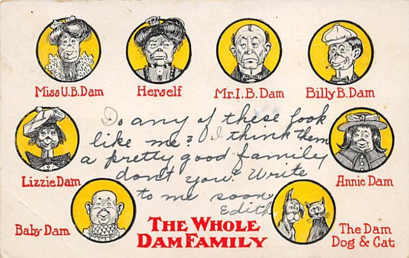 The whole damn family Oddities Postcard 1906, Grade: 4, , Size: Regular size: Approx 3 1/2 X 5 1/2 inch (9 cm X 14 cm) Grading Scale: Grade 1 = Perfect corners Grade 2 = Very Minimal corner wear, no creases Gr ... Read More