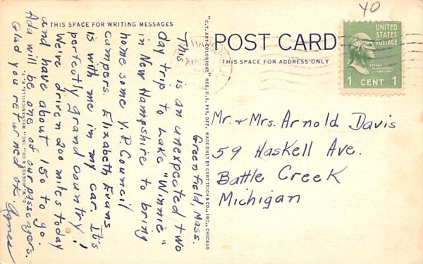 The Wigwam & Western Summit in Mohawk Trail, Massachusetts Postcard - postal used unknown Grade: 2 writing on front Size: R - Regular size: Approx 3 1/2 X 5 1/2 inch (9 cm X 14 cm) Grading Scale: Grade 1 = Per ... Read More