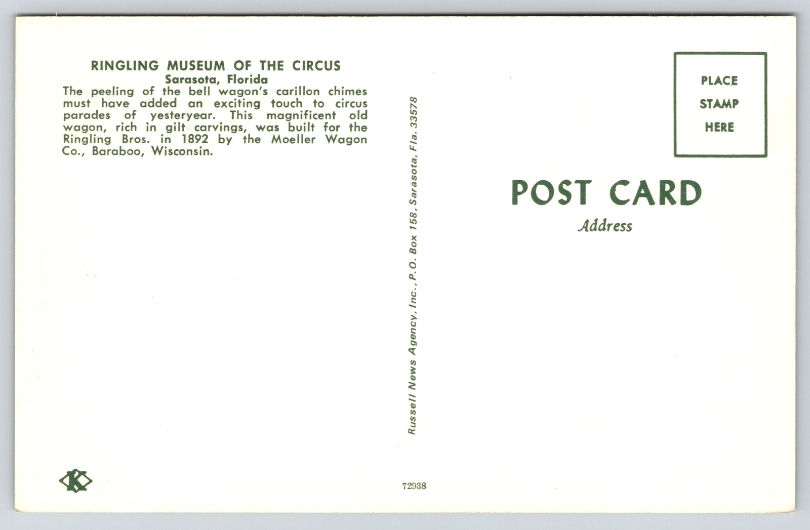 Theme Park & Circus~Peeling Bells Wagon Ringling Circus Museum~Vintage Postcard