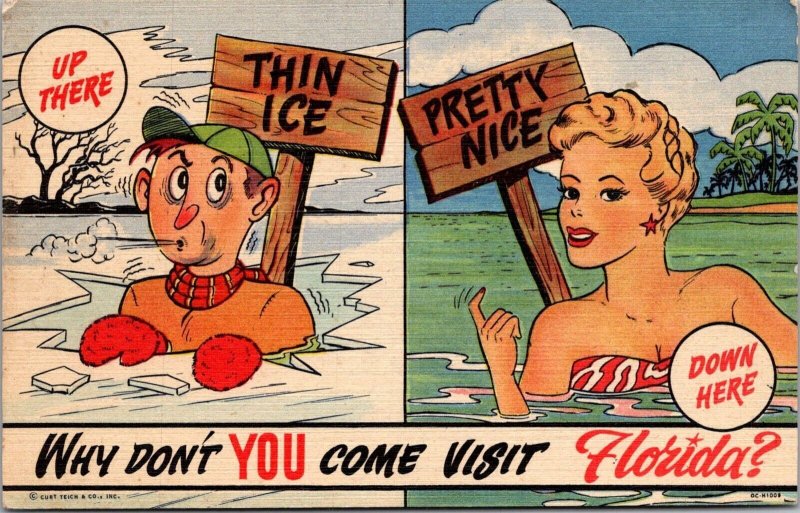 Thin Ice or Pretty Nice, Come Visit Florida Vintage Postcard Q77