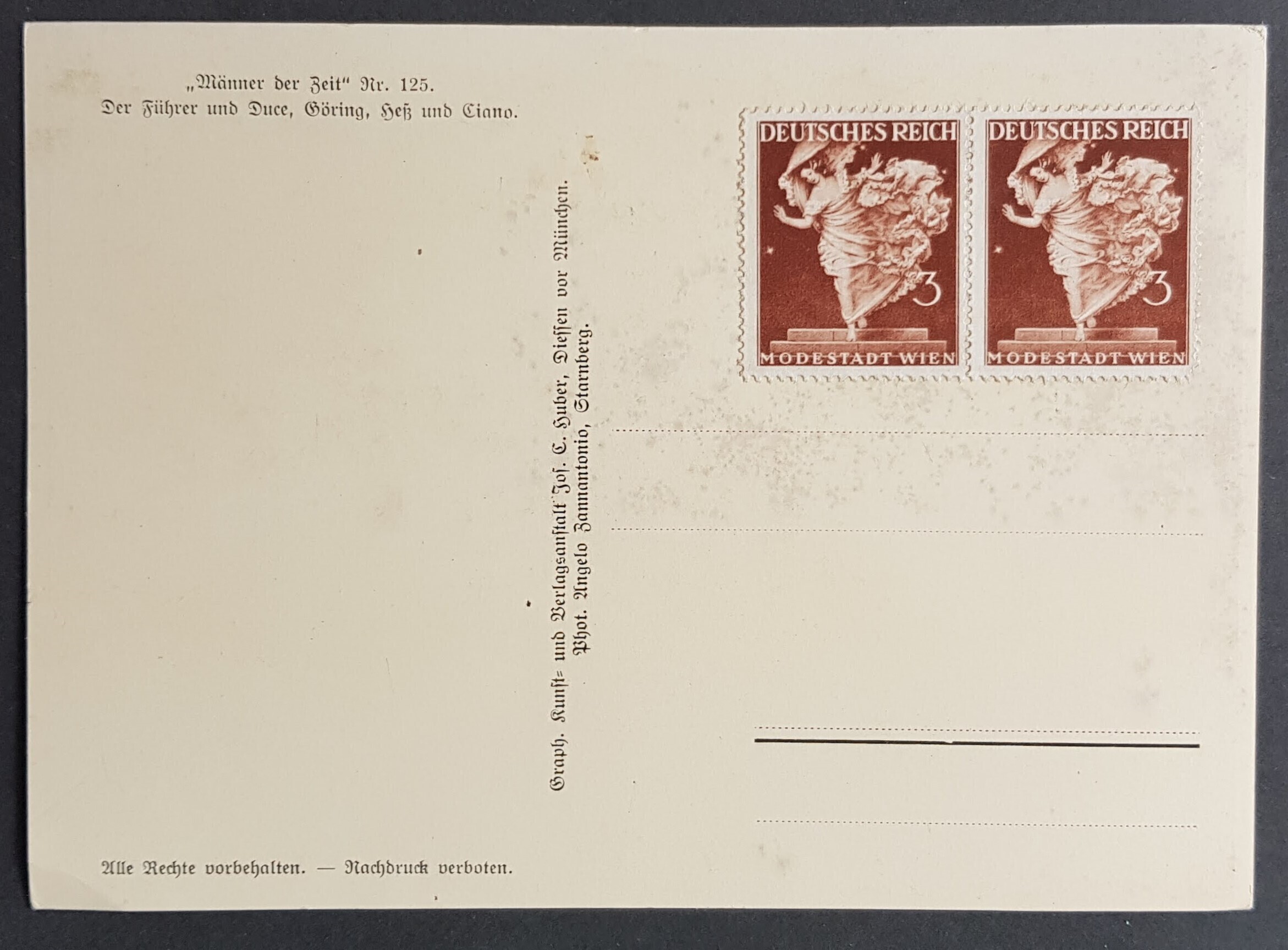 THIRD REICH ORIGINAL POSTCARD MUSSOLINI HITLER GORING CIANO AXIS MEETING MUNICH