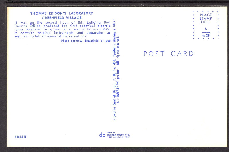 Thomas Edison's Labratory,Greenfield Village,MI BIN
