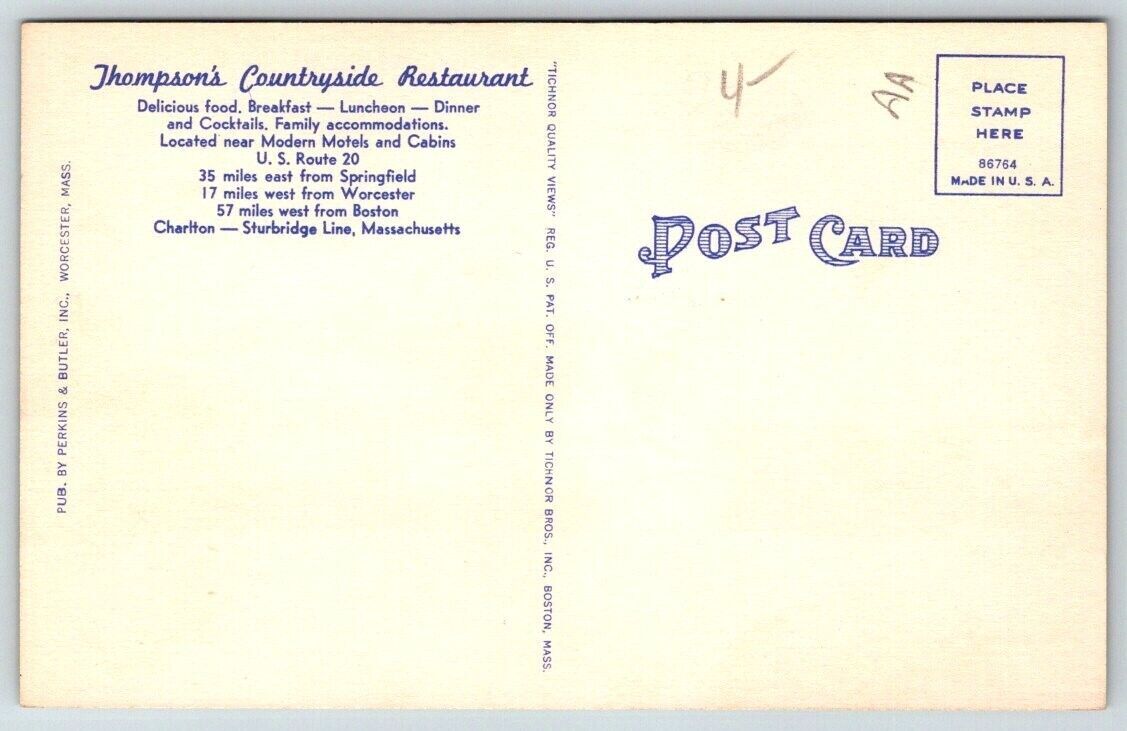 Thompson's Countryside Restaurant Charlton Massachusetts Postcard