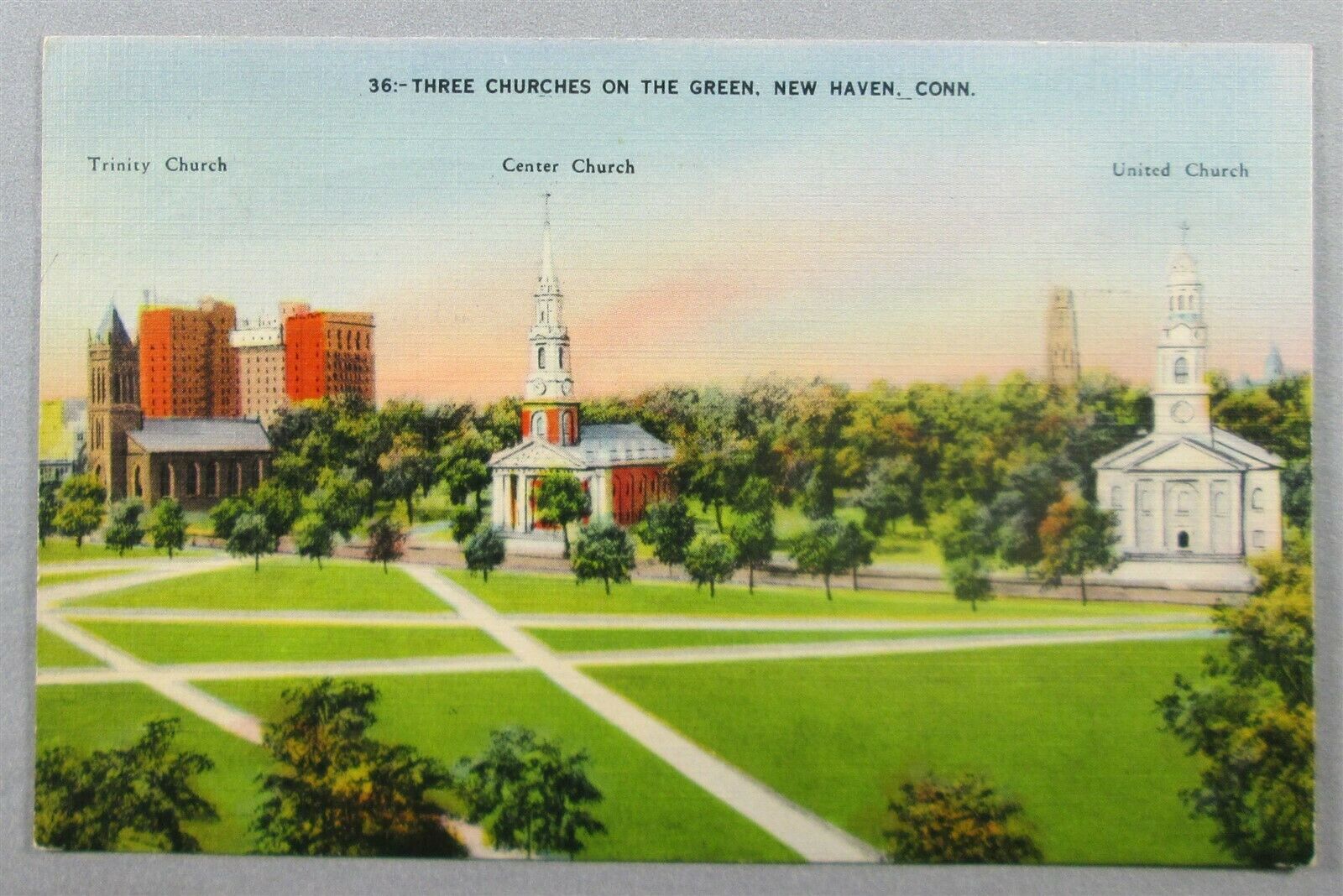 Three Churches On The Green, New Haven CT Postcard (#7156)
