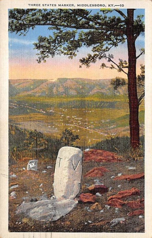 Three States Marker Middlesboro KY Postcard - 1936