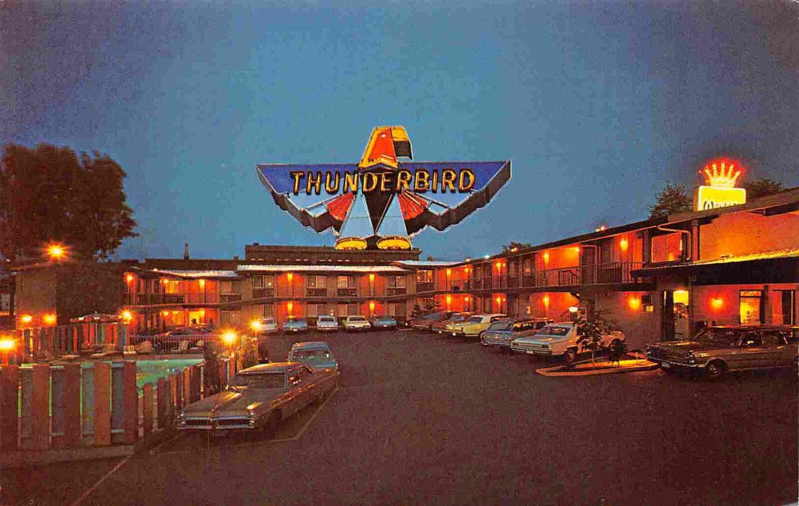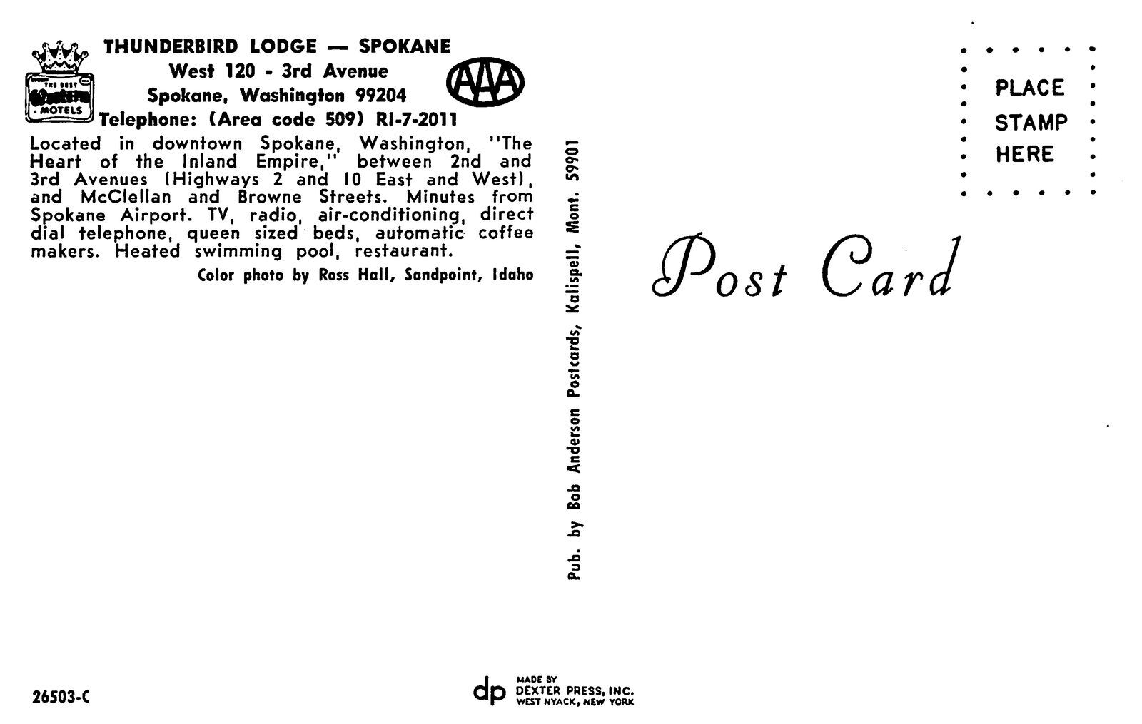 Thunderbird Lodge at Night West 120 Spokane Washington postcard