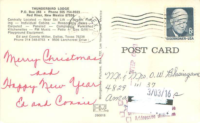 Thunderbird Lodge, Red River, New Mexico Vintage Postcard