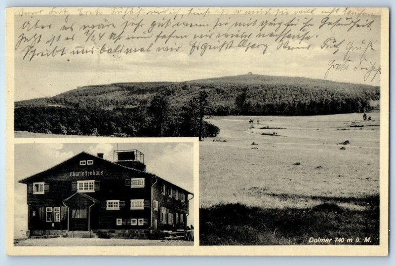 Thuringia Germany Postcard Dolmar Mountain Berggasthof Charlottenhaus 1934