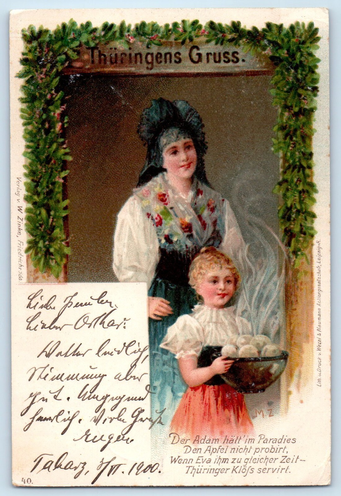 Thuringia Germany Postcard Kid Serving Thuringia Dumplings Greetings c1905