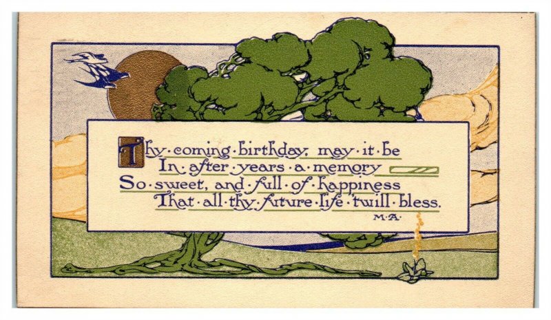 Thy Coming Birthday, Arts & Crafts A.M. Davis Postcard *6J34