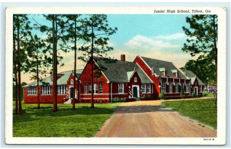 TIFTON, GA Georgia ~ JUNIOR HIGH SCHOOL c1940s Linen Tift County Postcard