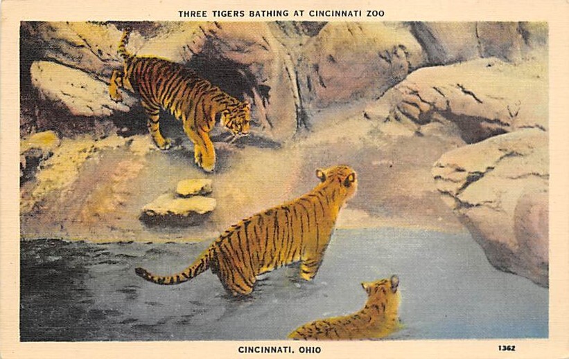 Tigers Cincinnati, Ohio Zoo Postcard Unused,