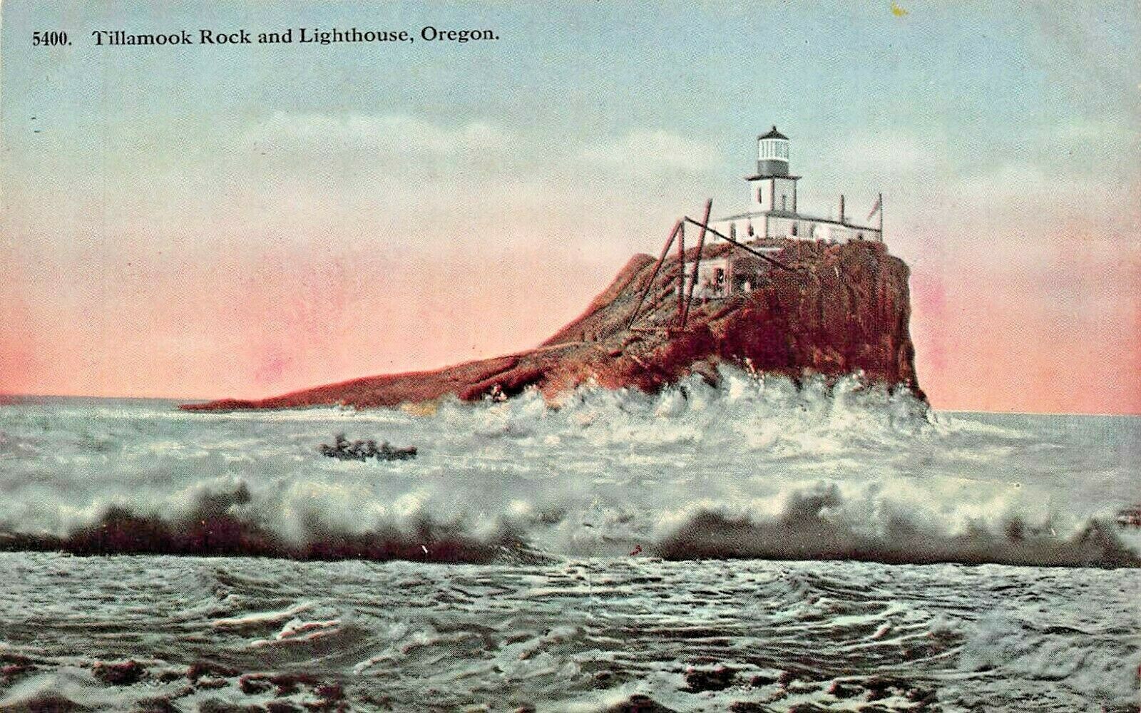 TILLAMOOK ROCK & LIGHTHOUSE OREGON~1910s POSTCARD