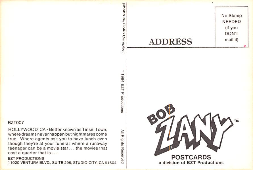 Tinsel Town - Hollywood, California Grade: 1 Category: Continental Size Postcard, Approx 4 in x 6 in (10 cm x 15.25 cm) Product Size: Continental size: 4X6 inches (10.5 cm x 15 cm) Grading Scale: Grade 1 = Per ... Read More