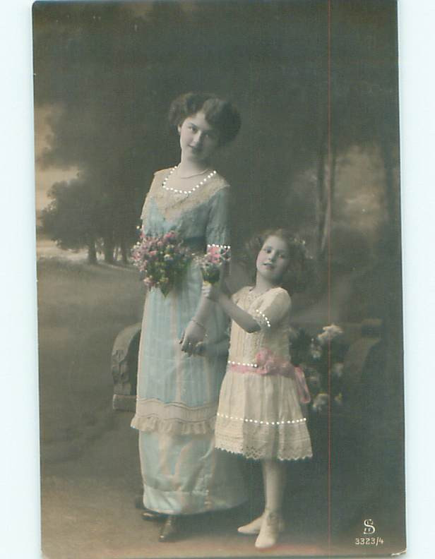 tinted rppc c1910 GIRL WITH MOM AC9176
