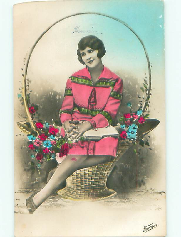 tinted rppc c1910 Risque PRETTY GIRL POSING AC9175