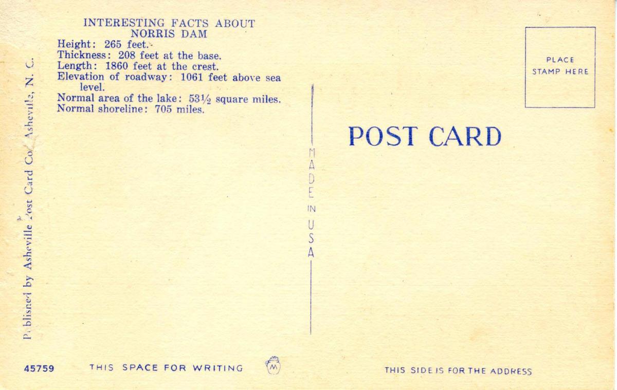 TN - Norris Dam at Night Grading of Postcards MINT (M): Perfect condition, no apparent blemishes, flaws, postally unused, may have some writing on back. NEAR MINT (NM): Like new, image is uncompromised, may have s ... Read More