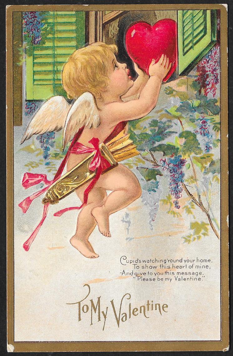 To My Valentine Cupid Arrows & Heart Used c1910s