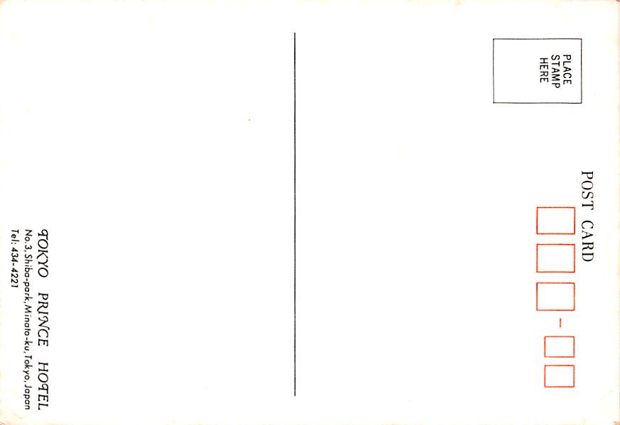 Tokyo Prince Hotel - Tokyo, Japan Grade: 1 Category: Continental Size Postcard, Approx 4 in x 6 in (10 cm x 15.25 cm) Product Size: Continental size: 4X6 inches (10.5 cm x 15 cm) Grading Scale: Grade 1 = Perfe ... Read More