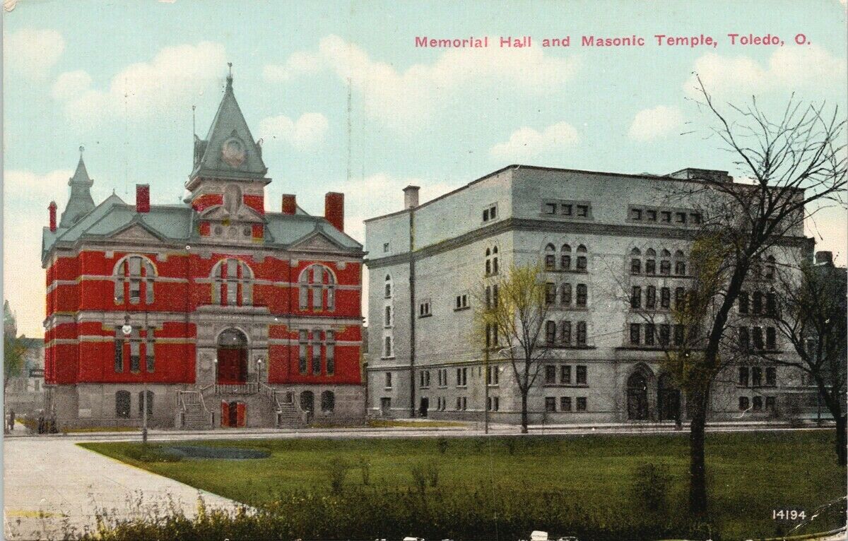 Toledo OH Memorial Hall and Masonic Temple c1913 Postcard G45
