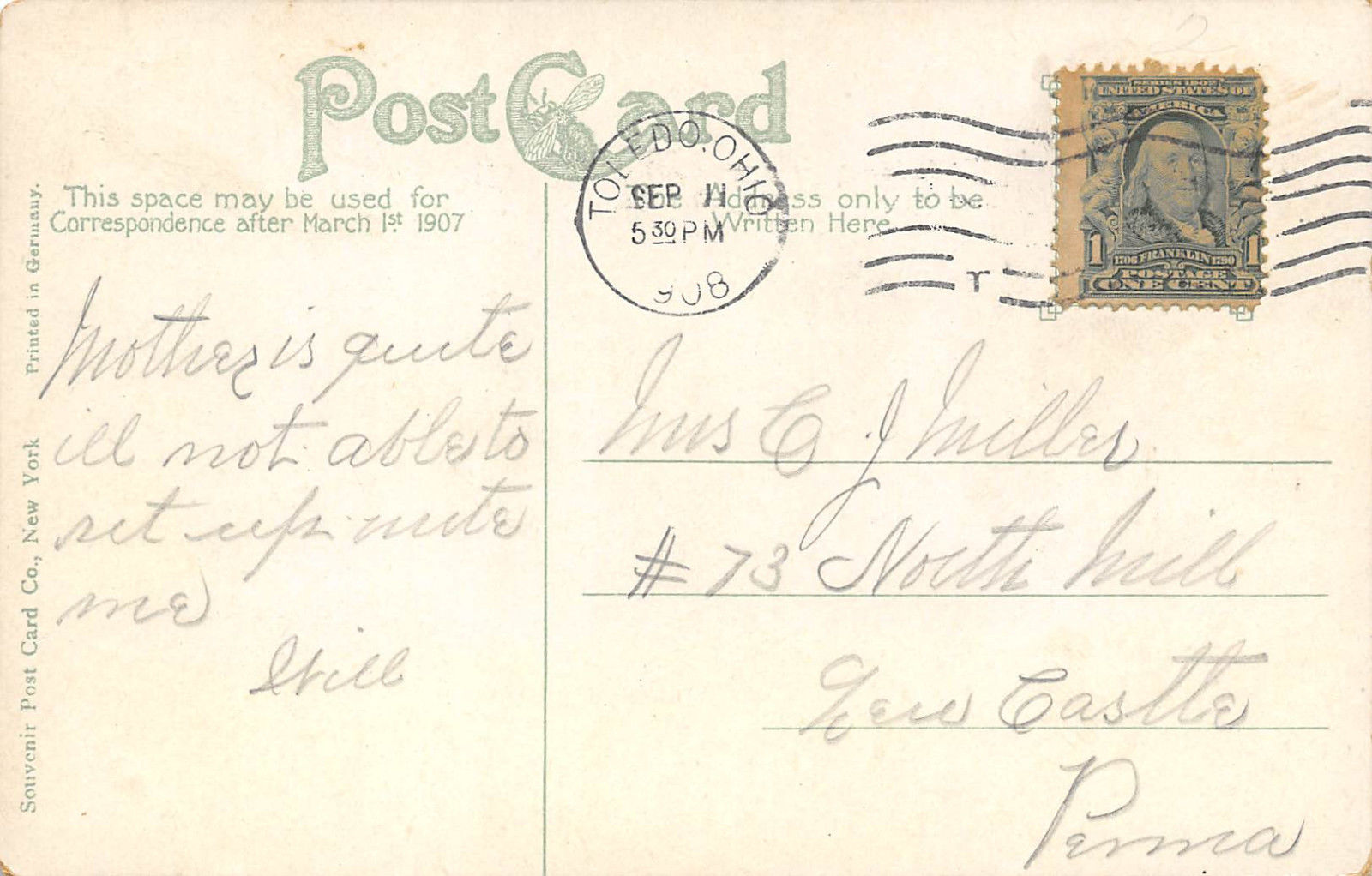 Toledo Ohio 1908 Postcard Masonic Temple