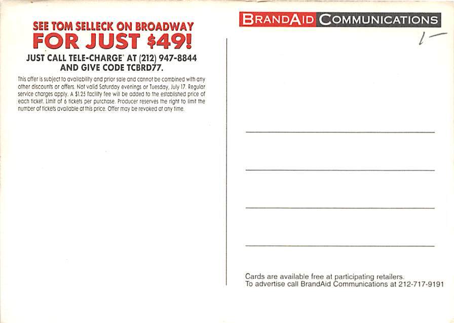 Tom Selleck, A Thousand Clowns, Longacre Theatre Postcard