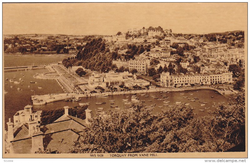 Torquay From Vane Hill, Torquay (Devon), England, UK, 1910-1920s :: Antique (Vintage) Original Postcard, Size 3.5" by 5.5", Litho, EX. Glossy Finish.
