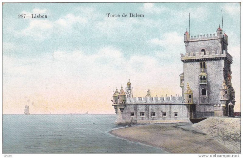 Torre De Belem, Lisboa, Portugal, 1910-1920s :: Antique (Vintage) Original Postcard, Standard Size (3.5 by 5.5), Litho, EX.