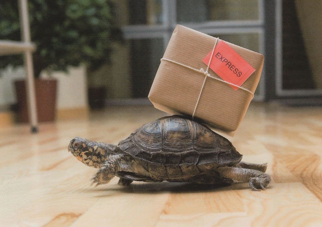 AP2 - I always aim to seek out the best and most specialist animal postcards from all over the world for my store. This real photo modern postcard was published in Germany of this tortoise as a courier delivering a parcel which is clearly going to take all day just getting to the other side of the room (the postcard is called in German "Tortoise Express") with reverse highlighting the photographer of this funny tortoise souvenir unused and mint.