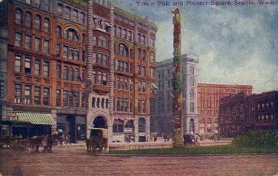Totem Pole & Pioneer Square - Seattle, Washington WA Postcard