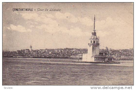 Tour De Leanare, Constantinople, Turkey, 1900-1910s :: Antique (Vintage) Original Postcard, Standard Size (3.5 by 5.5), Litho, EX.