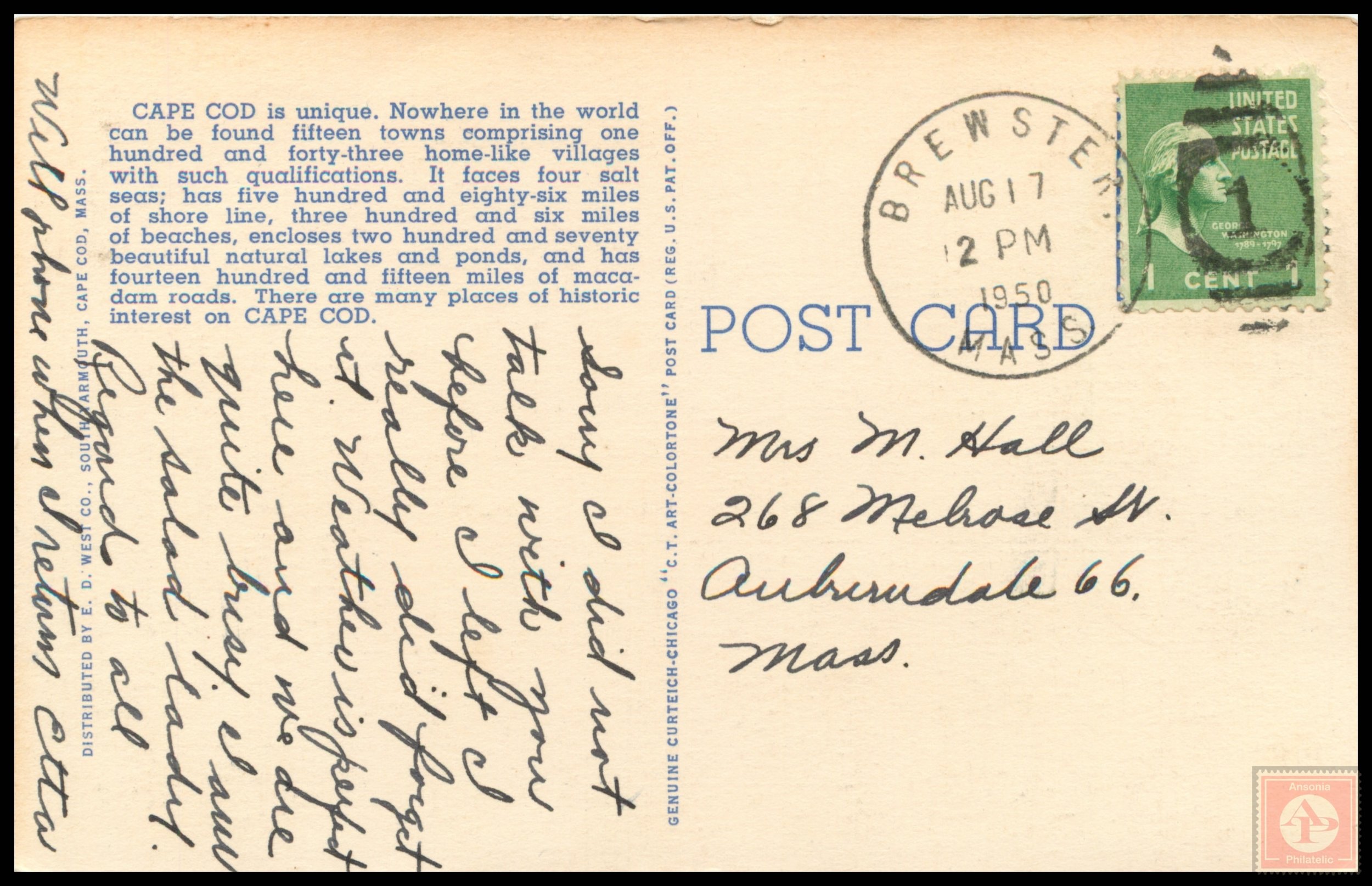 Some scans of postcards result in colored streaks which are a result of the error in scanning and not a fault of the postcard.