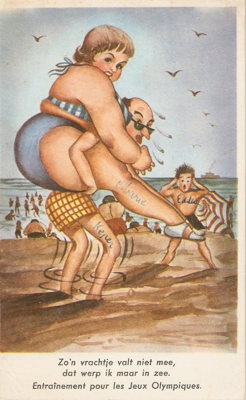 "training for the olympic games" risque humour belgian postcard Publisher: NOT MENTIONED. PRINTED IN BELGIQUE Artist: NOT CREDITED Condition: Divided. Written on back and posted (place and date illegible). 1 ... Read More