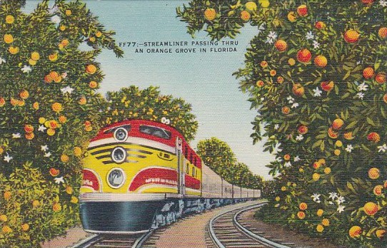 Trains Streamliner Passing Thru An Orange Grove In Florida