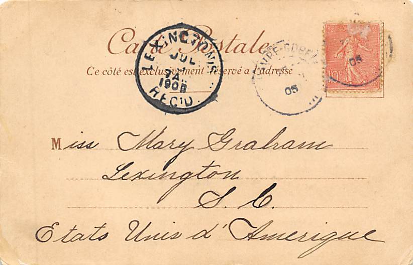 Transatlantique French Line Ship Postcard 1905, Grade: 3 - writing on front side Size: Regular Size Postcard - approximately 3 1/2 inch x 5 1/2 inch (9 CM x 14 CM) Grading Scale: Grade 1 = Perfect corners Grade ... Read More