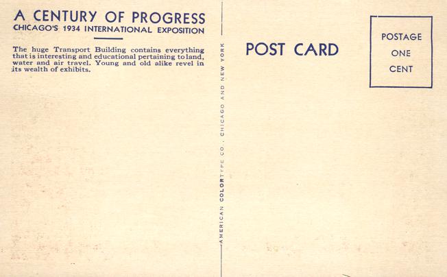 Transpoprt Building - Chicago 1934 Exposition IL, Illinois - Linen