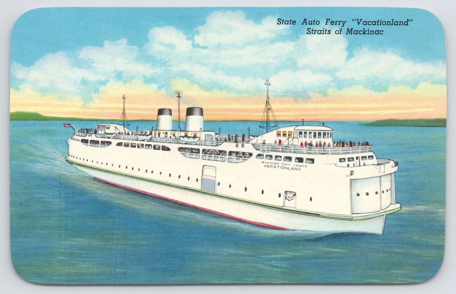 Transportation~Auto Ferry Vacationland Straits Mackinac~Vintage Postcard