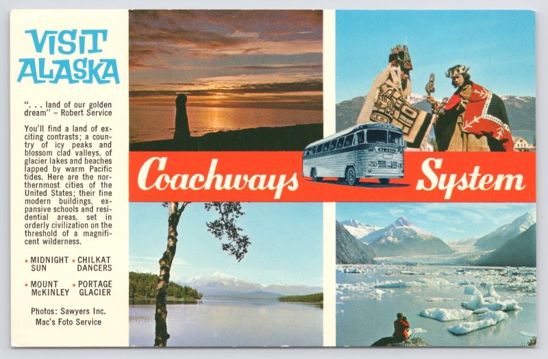 Transportation~Bus~Alaska Coachways System~4 Alaska Scenes & Bus~Vintage PC