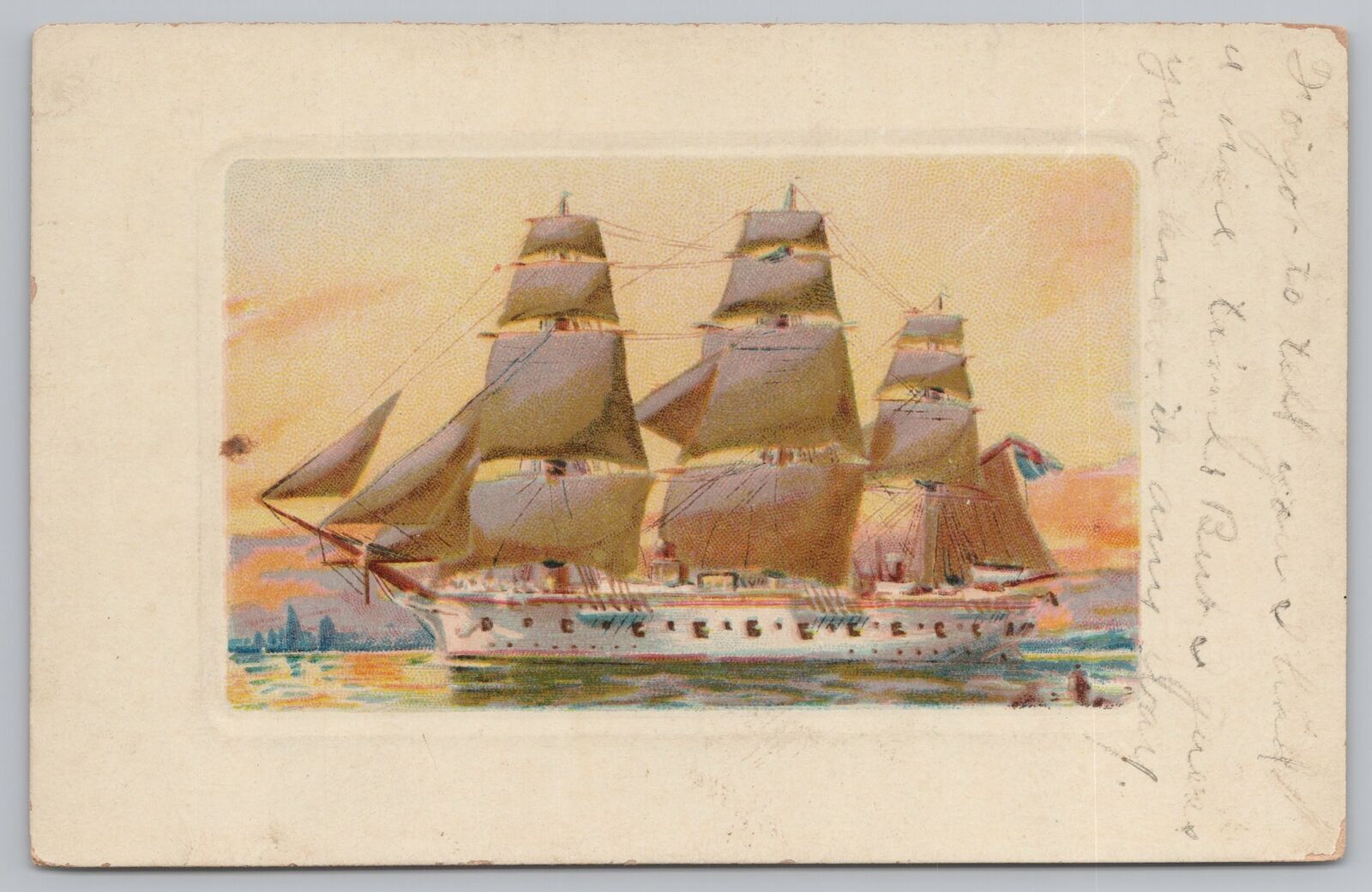 Transportation~Full~Rigged Sailing Ship w/Square-Rigged Masts~1911 Postcard