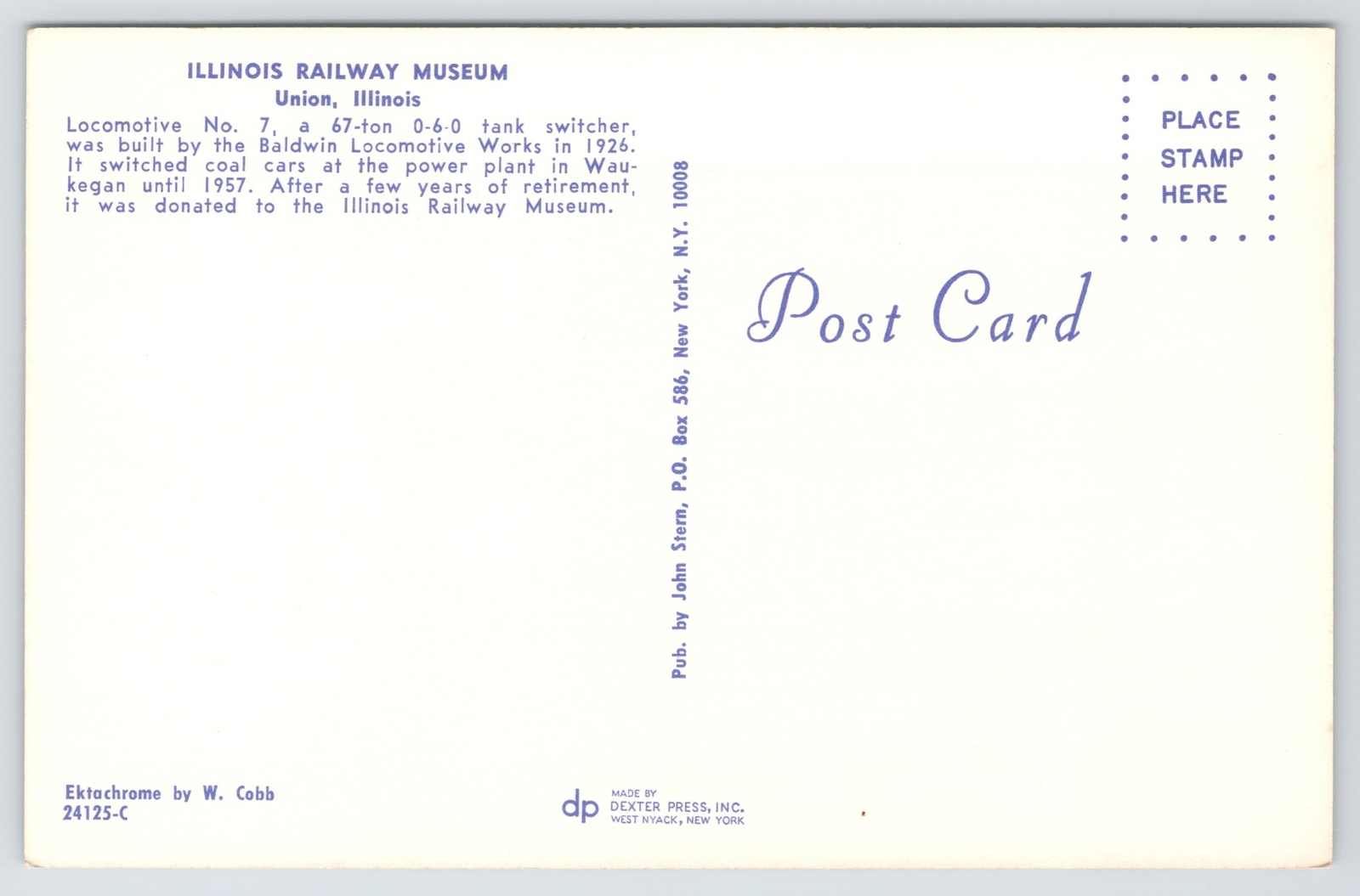 Transportation~Locomotive No 7 Illinois Railway Museum Union IL~Vintage Postcard