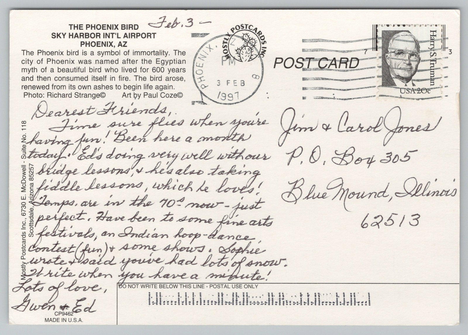 Transportation~Phoenix AZ~Sky Harbor Internat'l Airport~Continental Postcard