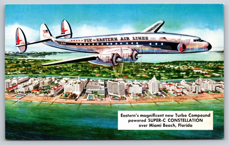 Transportation~Plane~Eastern's~Super-C Constellation Over Miami Beach~Vintage PC