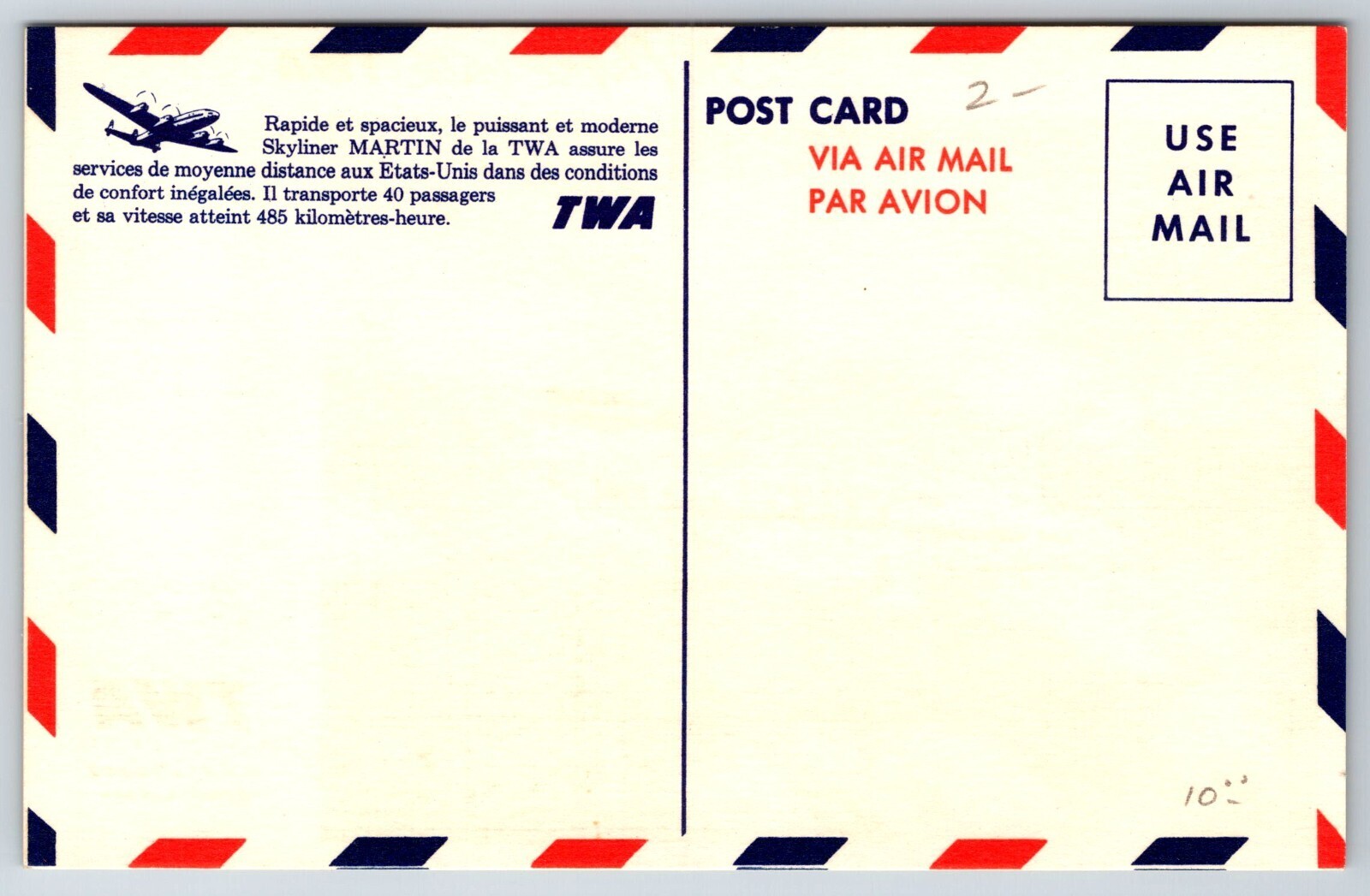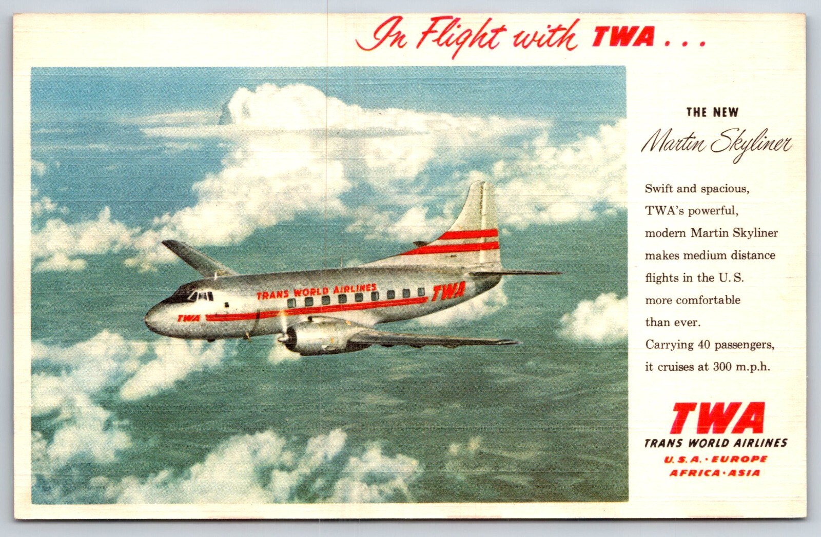 Transportation~TWA Airlines Airplane in Sky~1950s Postcard