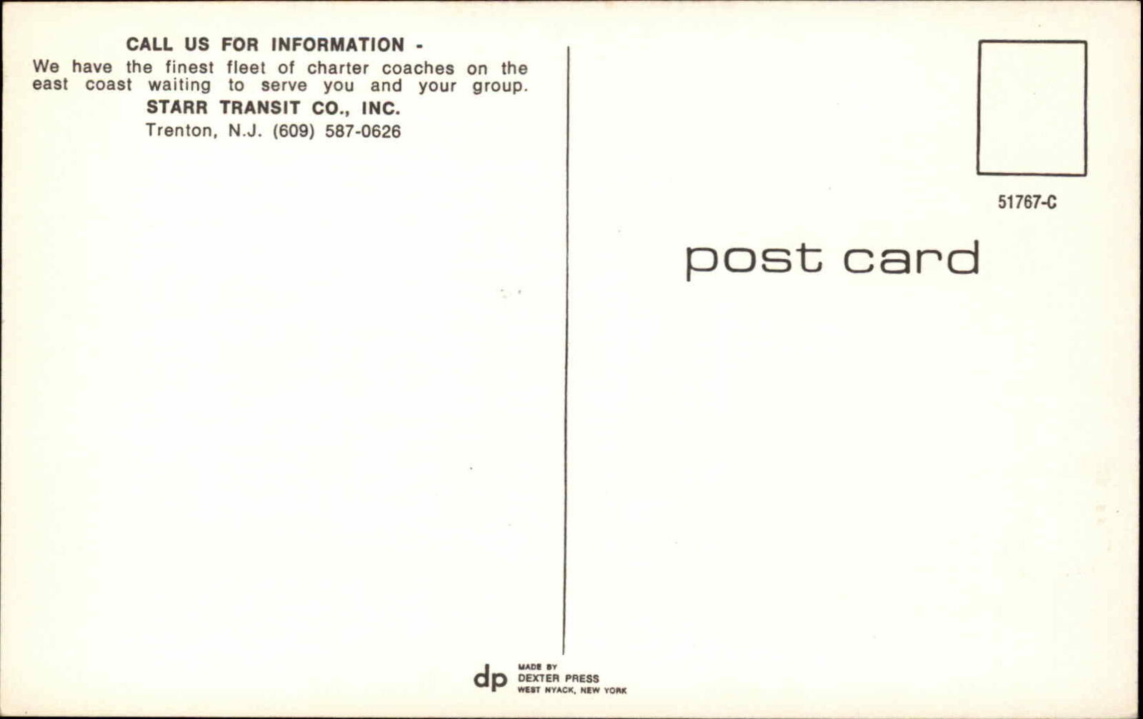 Trenton NJ Starr Transit Co. Bus Vintage Chrome Postcard