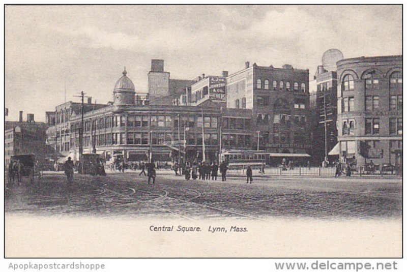 Trolley On Central Square Lynn Massachusetts 1912