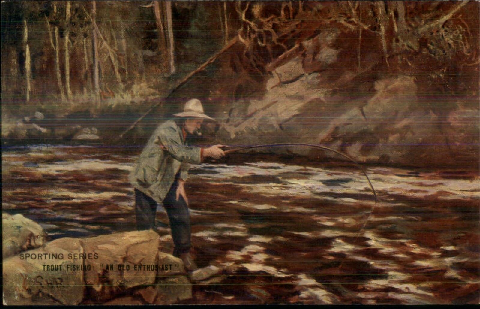 Trout Fishing Sporting Series AN OLD ENTHUSIAST c1910 Postcard