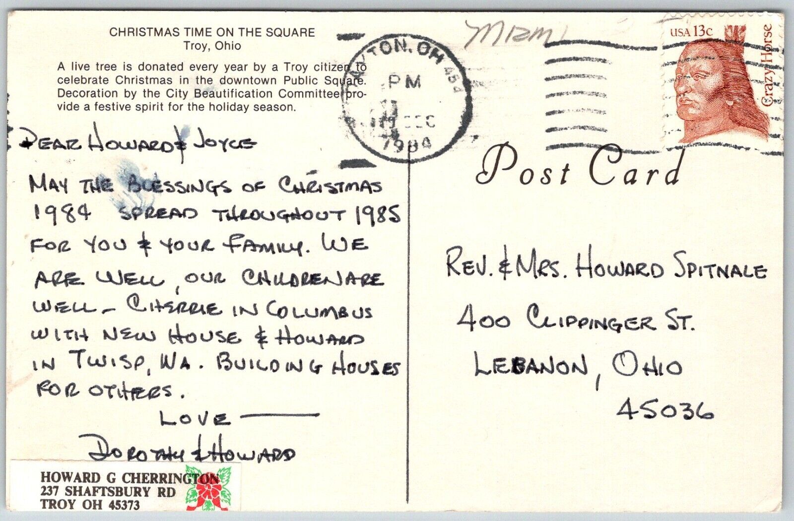 Troy Ohio 1984 Postcard Christmas Time On The Square