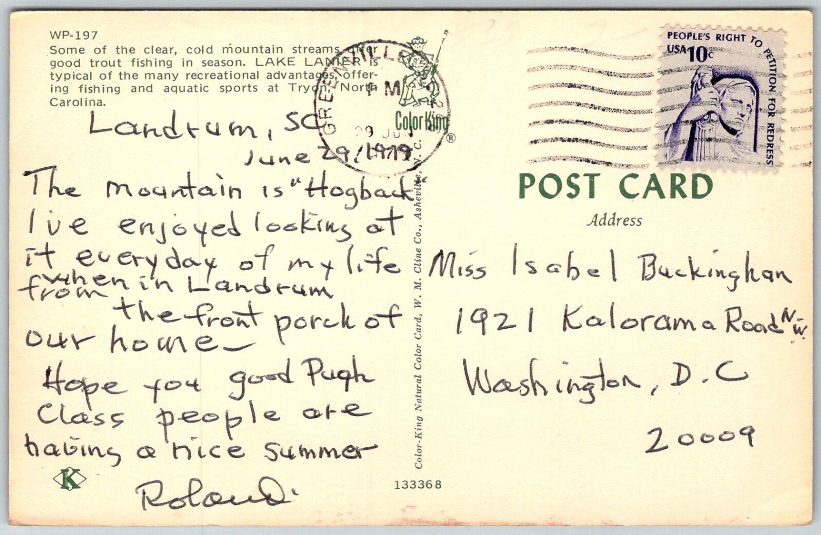 Tryon North Carolina 1979 Postcard Lake Lanier