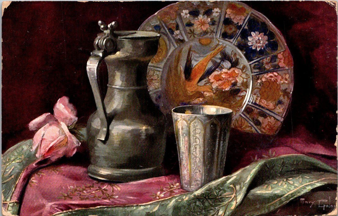 Tucks Arts and Crafts Pewter Pitcher and Cup 1908